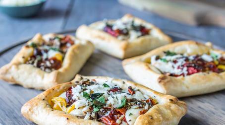 Feuilletés de chèvre, confit d'oignons et pommes