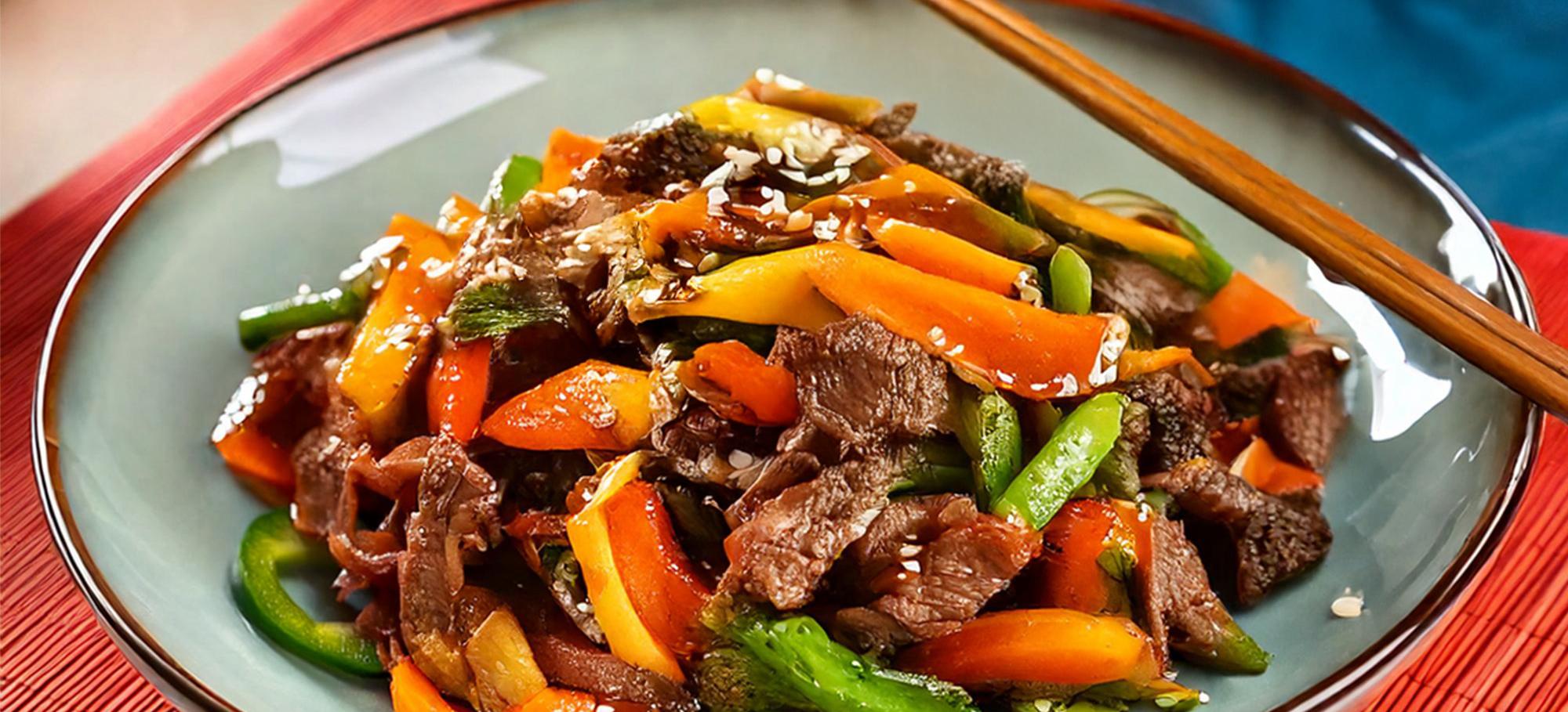 Faire chauffer l’huile dans un wok et y saisir les lamelles de bœuf une minute en remuant bien, retirer la viande et réserver.