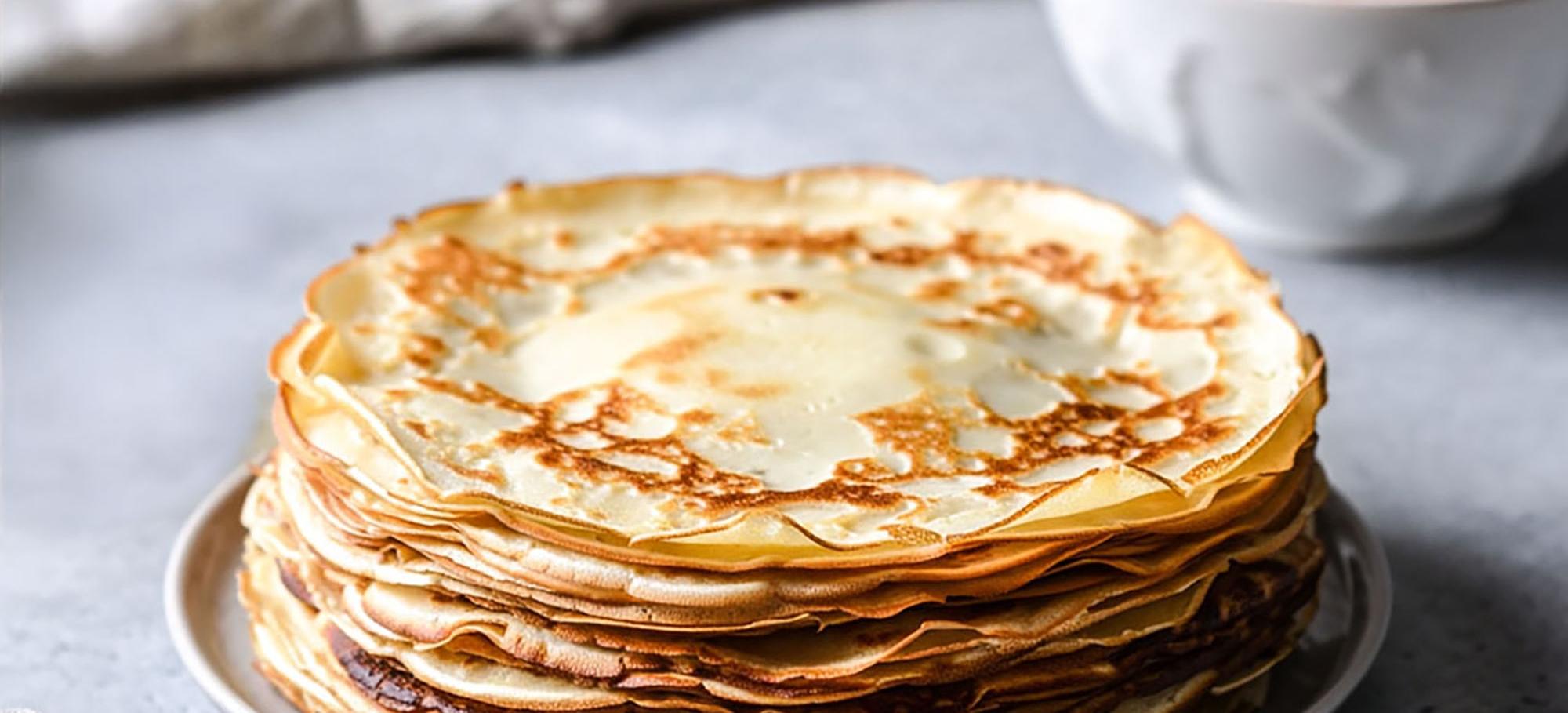 Chauffer une poêle légèrement beurrée, y verser une louche de pâte, et cuire les crêpes 1 à 2 minutes de chaque côté jusqu’à épuisement de la pâte.