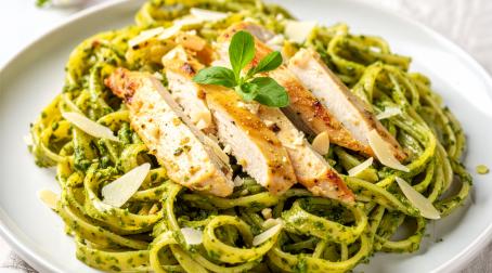 Plat Linguine, poulet et pesto printanier Nombre de personnes : 4 pers Temps de préparation : 20 mn Voir la recette