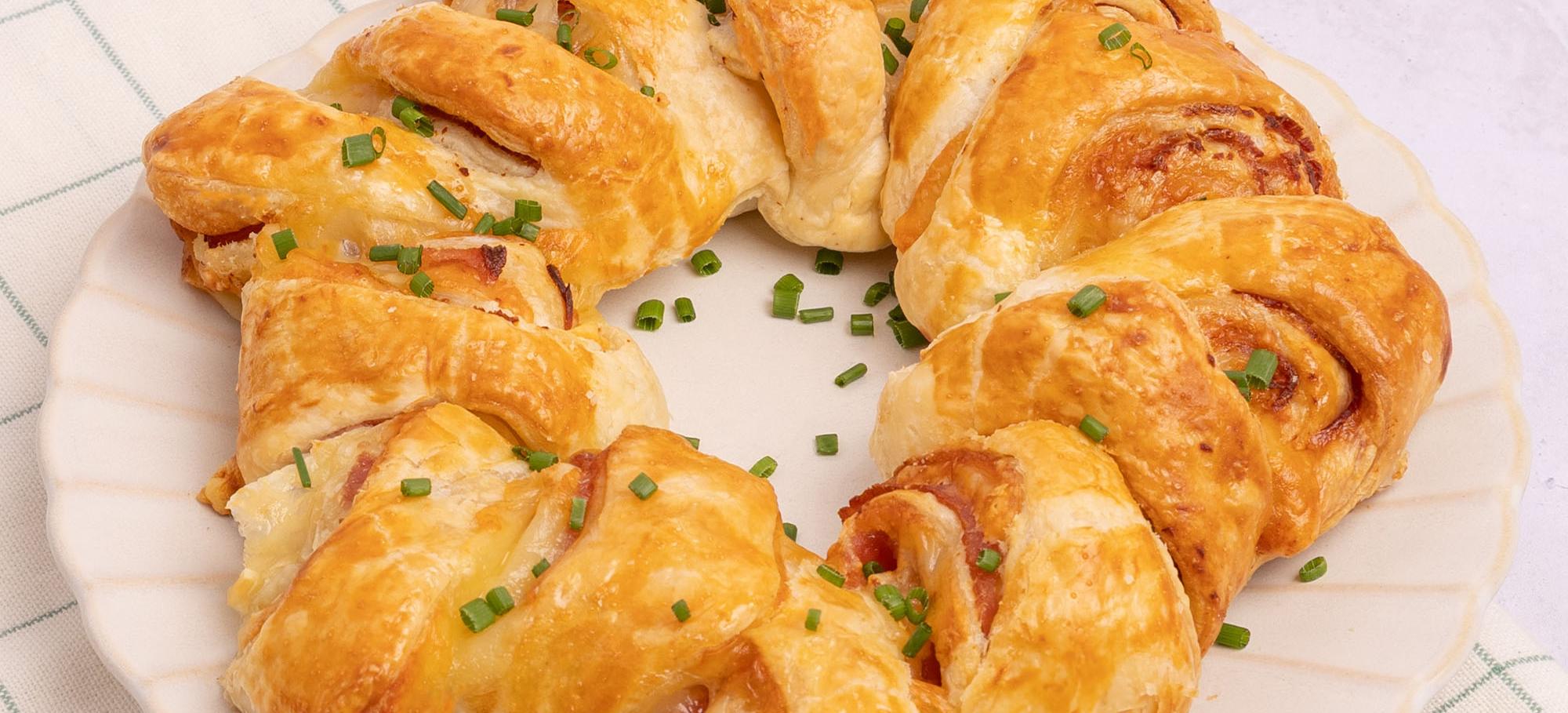 À l'aide de ciseaux, couper des entailles profondes tous les 3 cm sur tout le tour extérieur de la couronne, sans couper jusqu'au centre (le cœur de la couronne doit rester attaché). Écarter chaque morceau découpé en les basculant légèrement vers la gauche ou la droite pour laisser apparaître la garniture.