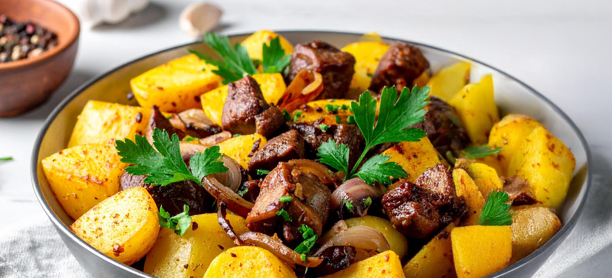 Lorsque les pommes de terre commencent à dorer, ajouter les champignons de Paris et les gésiers de canard.